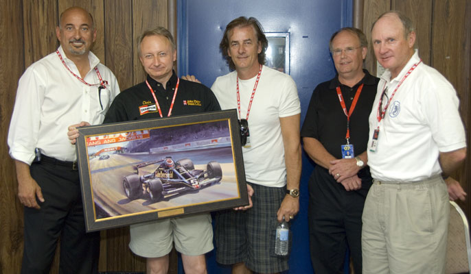 Indy 500 winners Bobby Rahal and Arie Luyendyk, Jim Vance, GM of KONI of North America,