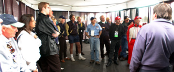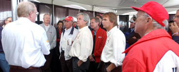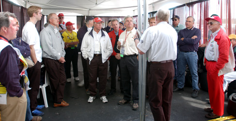 Before each session on the track, all the drivers come together to discuss every detail. Despite the drivers' considerable experience, they share current information ranging from track conditions to driver expectations to safety procedures, and more.