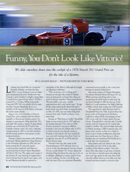 "The car meant a lot to Doug and I because we thought the world of Vittorio since we had gotten to know him when we raced in Europe together," King remembered. "He was really a neat guy -- totally unpretentious and a real family man." At age 64 the warm and friendly Brambilla had a heart attack and died while mowing his lawn on May 26, 2001, but not before King had reunited him with 761/08 at Monza a few years back.