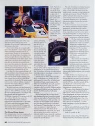I sat there for a few moments letting it all sink in, and that's when I became aware of my heart beginning to pick up its beat in my chest and the damp Nomex clinging to my back. Scared? Not at all, but it was all the responsibility of driving the 761 quick enough to do it justice without making a mistake. I remember Steve Earle telling me, "They're easy to drive, but hard to race."