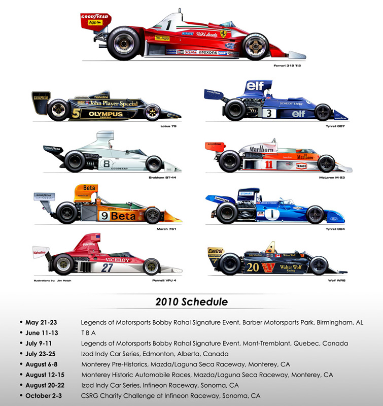The 2010 Schedule as seen in the recent January/February edition of Vintage Motorsport is below. We are still working through the decision/negotiations about GP du Canada 11-13 June. Thank you for your patience.